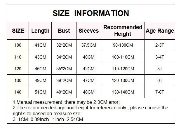 Name: Children clothing set Material: cotton Size: 90-100-110-120-130 size 2T=90 size 3T=100 size 4T=110 size 5=120 size 6=130 1lot=1set, you can choose one size!