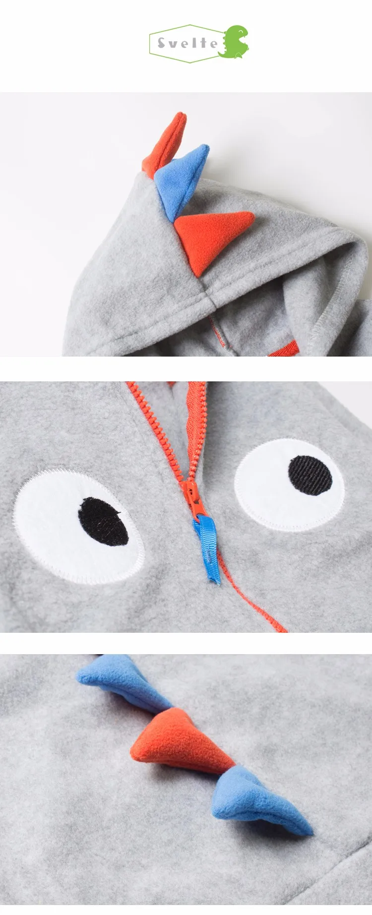 Svelte Brand Kids Boys Cute Polar Fleece Dinsaur Role Play Hoodies Children Boy’s Eyes embroidery on the chest Hooded Jackets