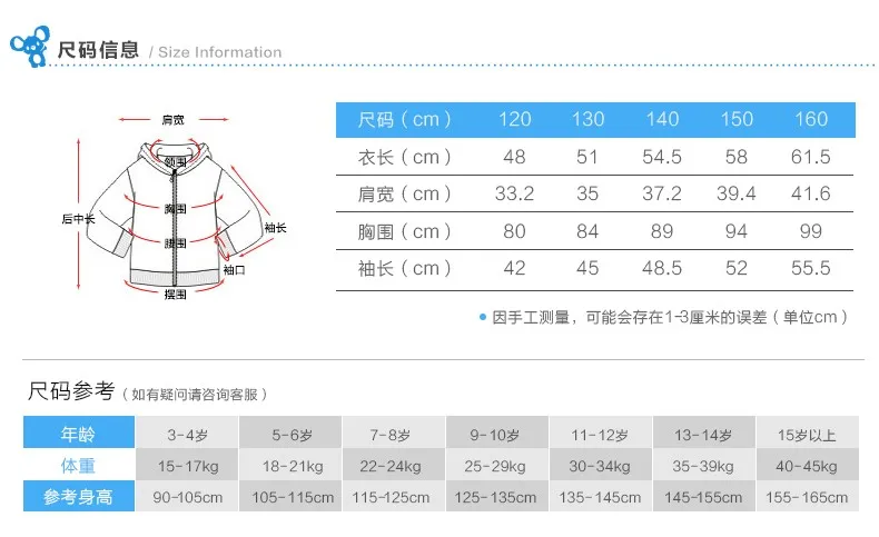Tag Size 90 100 110 120 130 US Size 2T 3T 4T 6T 8T Length (cm) 37 40 43.8 47 48 Chest (cm) 65 68 70 76 78 Sleeve (cm) 32 36.4 40 43.5 49 Shoulder (cm) 27 28.5 29.5 … Read More