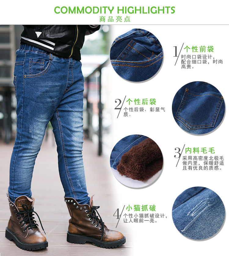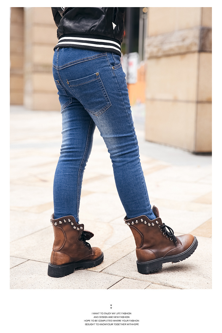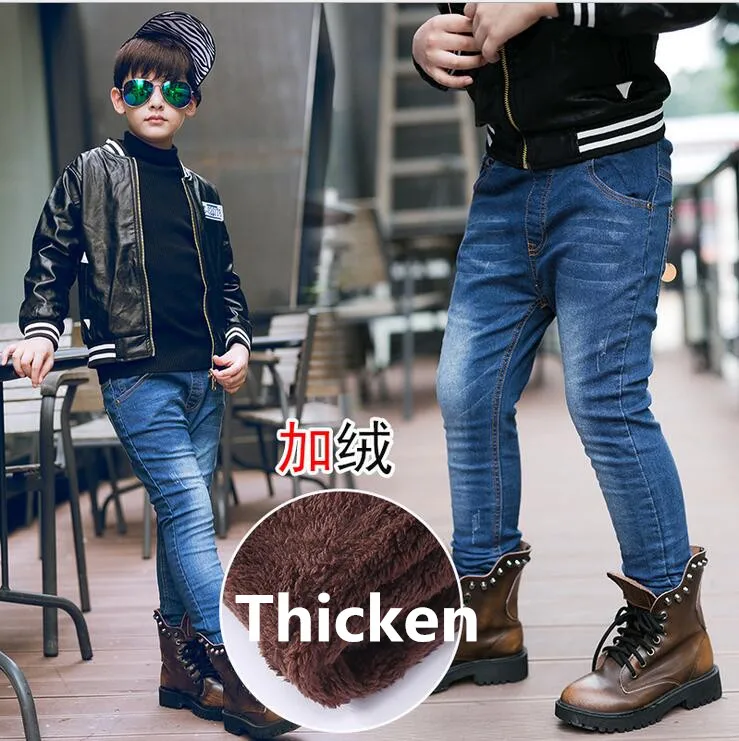 2017 winter new fashion boys jeans warm lining children casual pants male kids jeans warm fleece boy denim pants skinny jeans