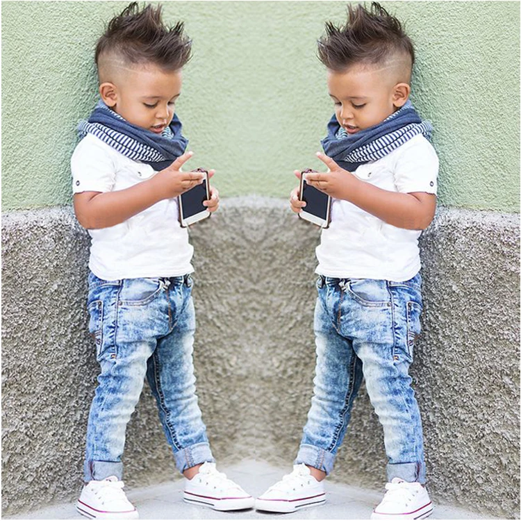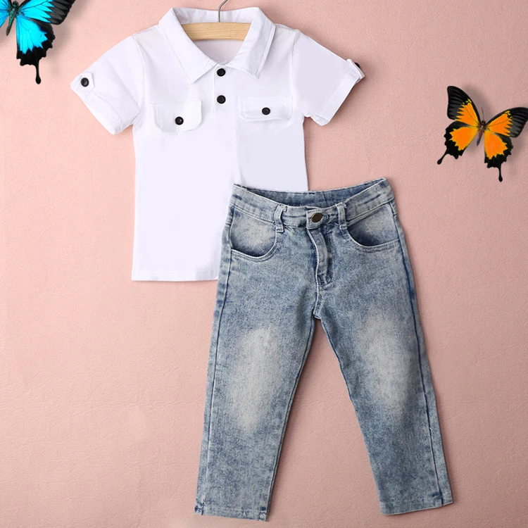 | Hello! Welcome to our store! Quality is the first with best service. customers all are our friends. Fashion design,100% Brand New,high quality! Material: Cotton Denim Color: White & Blue 2-7Y Girls kids Soft Cotton 2-Piece Outfit: Shirt Top+ Pant Bottom Package: One set Please pay attention to the size details before making your payment There is 2-3% difference according to manual measurement.please check the measurement chart carefully before you buy the item. 1 inch = 2.54 cm Preview