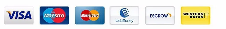 Payment We accept Escrow which including Visa and Master credit card, Qiwi wallet, Western Union, WebMoney, Boleto and bank transfer.More payments,please .
