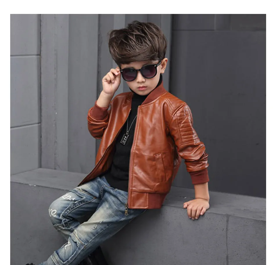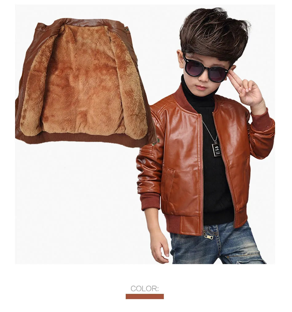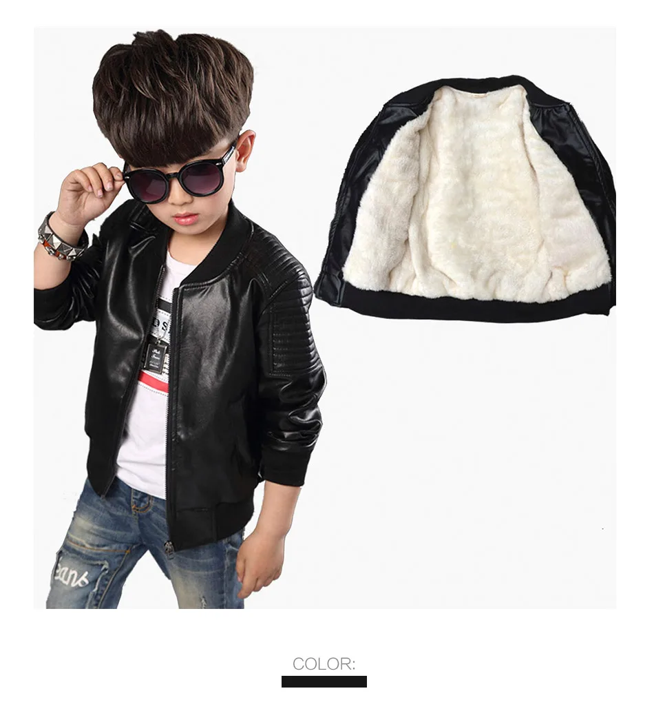 Home » » Children's Clothing » Boys Clothing » Boys Jeans » Little J Kids Leather Jacket Handsome Boys Girls Winter Thick Velvet Warm Pu Jacket Fashion Black Overcoat Children Clothes Coat