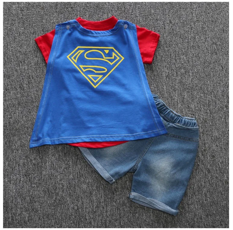 Home » » Children's Clothing » Boys Clothing » Boys Jeans » Summer Brand Clothes For Boys Batman Superman Shirt And Short Jeans Toddler Boy Shorts Sets Streetwear Kids Outfits Boys Suits