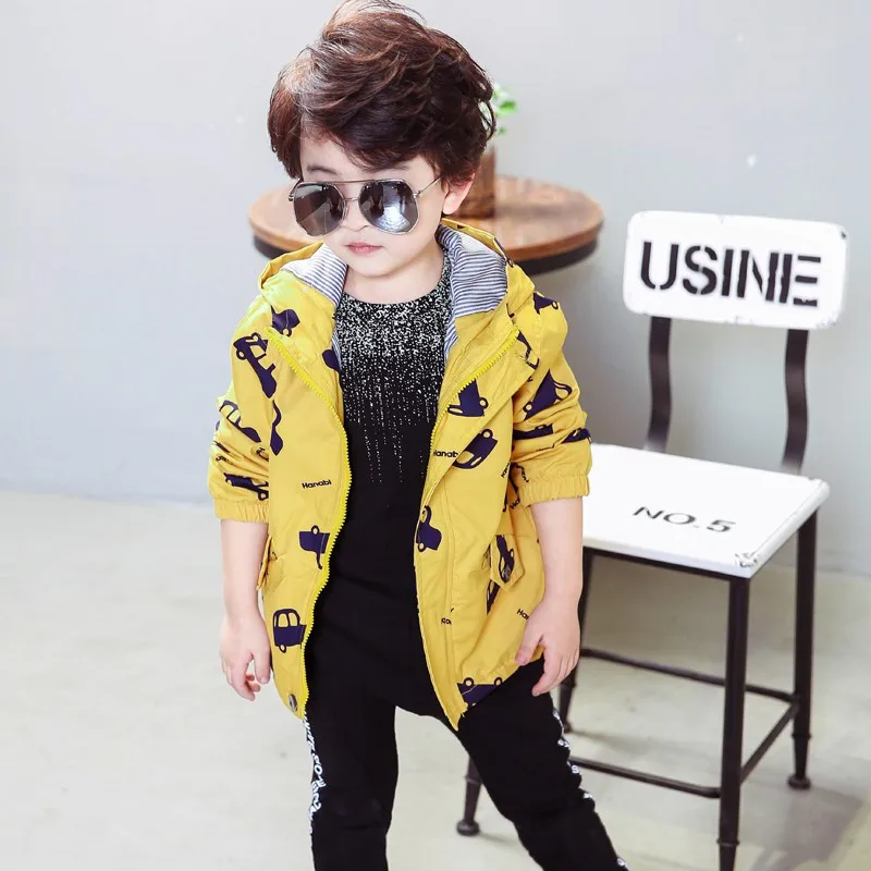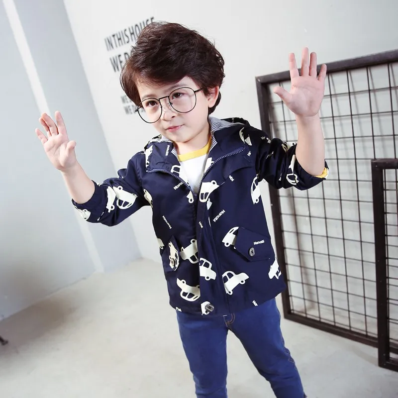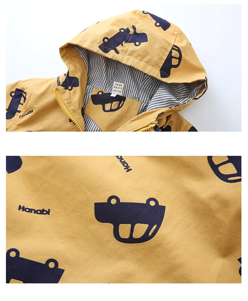 70-120cm 2017 Spring Jacket Boys Girls Kids Outerwear Cute Car Windbreaker Coats Fashion Print Canvas Baby Children Clothing