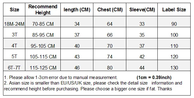- Size: 90-100-110-120-130 suitable for 18M – 7 years old kids.