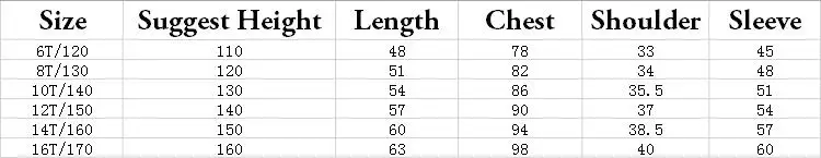 6T suitable for 110cm baby 8T suitable for 120cm baby 10T suitable for 130cm baby 12T suitable for 140cm baby 14T suitable for 150cm baby 1 6T suitable for 160cm baby Unit:cm,1cm=0.4inch,Because of different measuring methods, there may be 1-3 cm error.