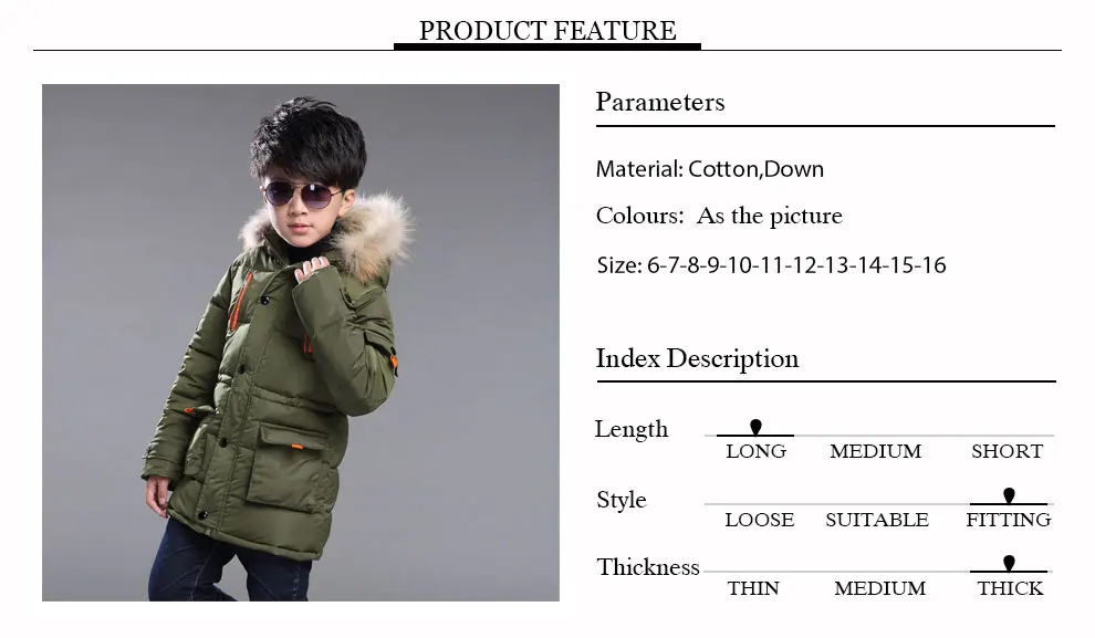 Children’s Down Jacket Warm Boys Clothes Baby Boys Winter Coats Hooded Coats Kids Warm Clothing Winter Jacket Boys