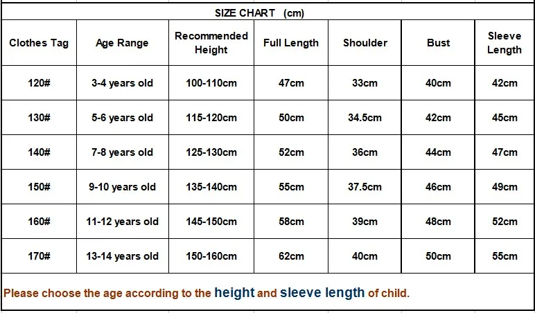 optation size tag size (cm) suggest height (cm) length (cm) shoulder (cm) bust (cm) sleeve (cm) 7 130 120-130cm 60 35 90 51 9 140 130-140cm 64 37 94 54 11 150 140-150cm 68 39 98 57 13 160 150-160cm … Read More