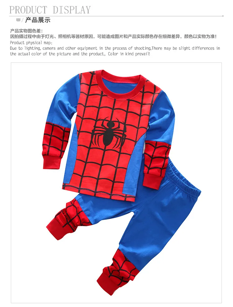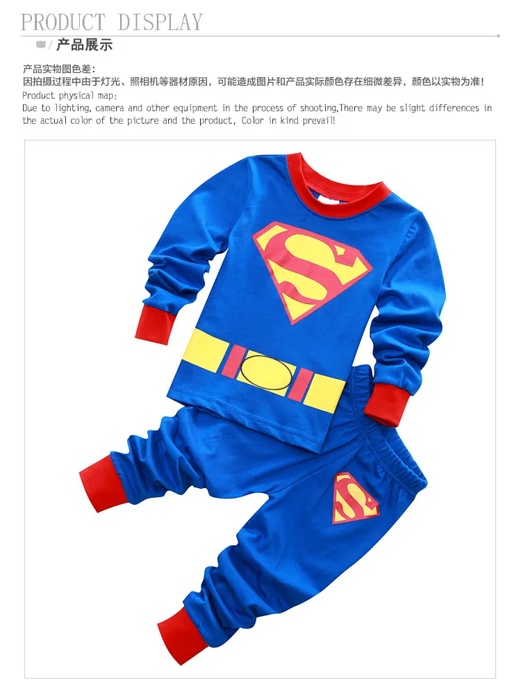 Home » » Children's Clothing » Boys Clothing » Boys Sets » 2016 Children Pajama Sets Cartoon Boys Girls Outfits Baby Pijamas Sleepwear Spiderman Superman Cotton Pyjamas Children Clothing