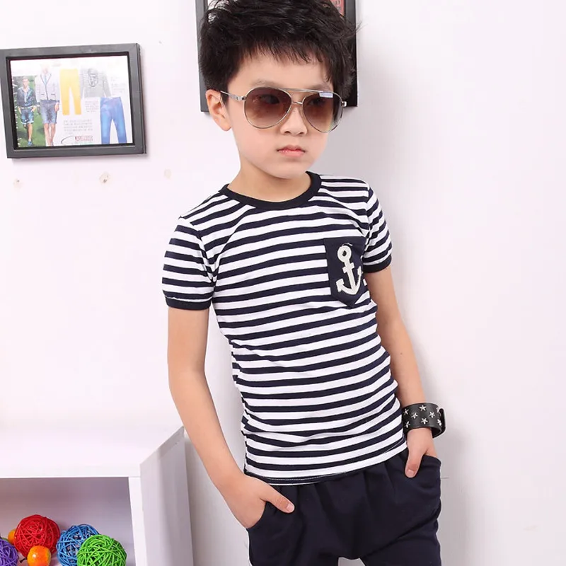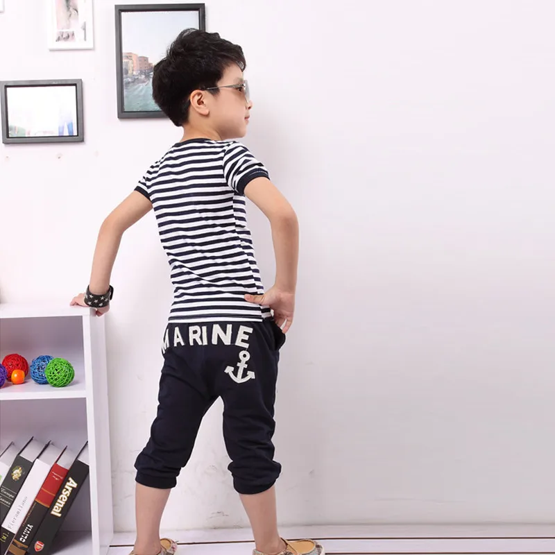 New Summer Children Clothing Boys Navy Striped T-shirt And Pants Suits
