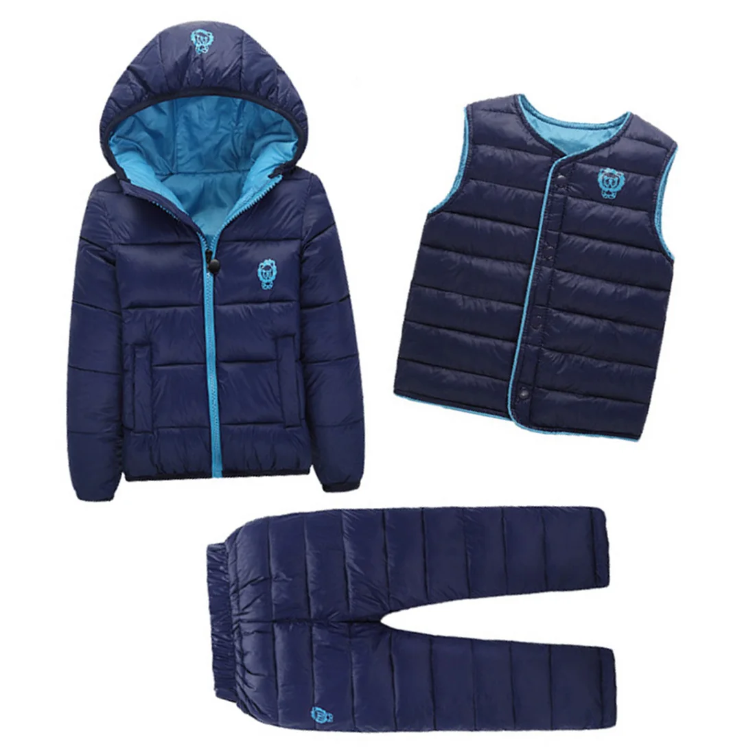 Home » » Children's Clothing » Boys Clothing » Boys Sets » 3 Pcs Lot Winter Baby Girls Boys Clothes Sets Children Down Cotton padded Coat 6 Colors 6 Size
