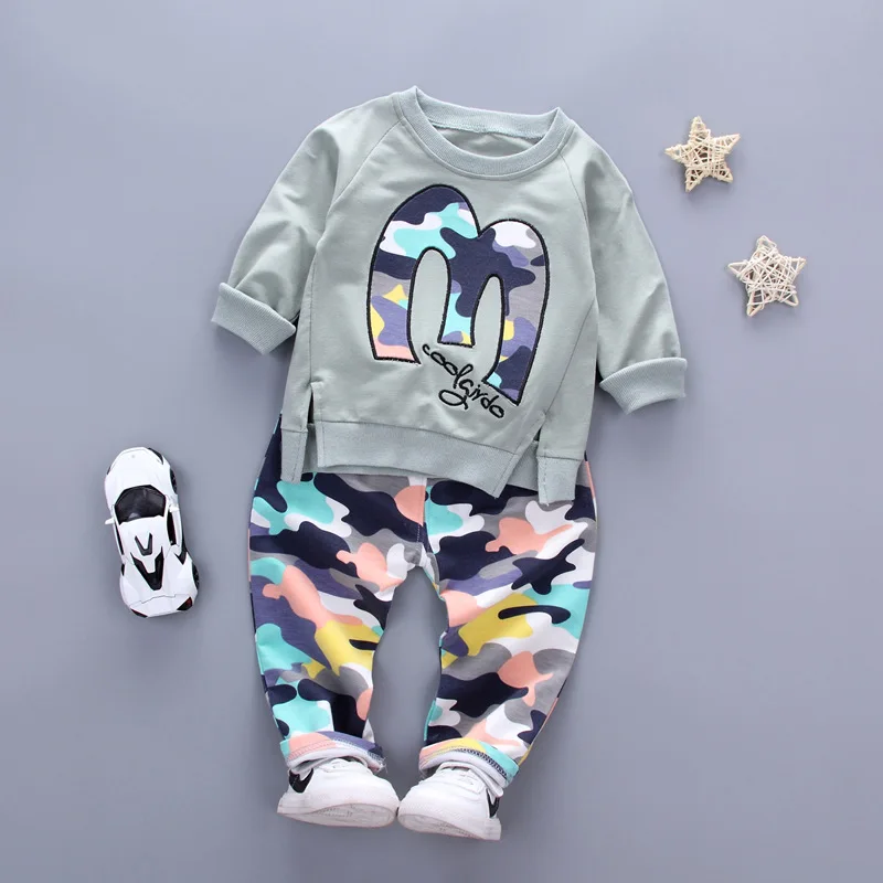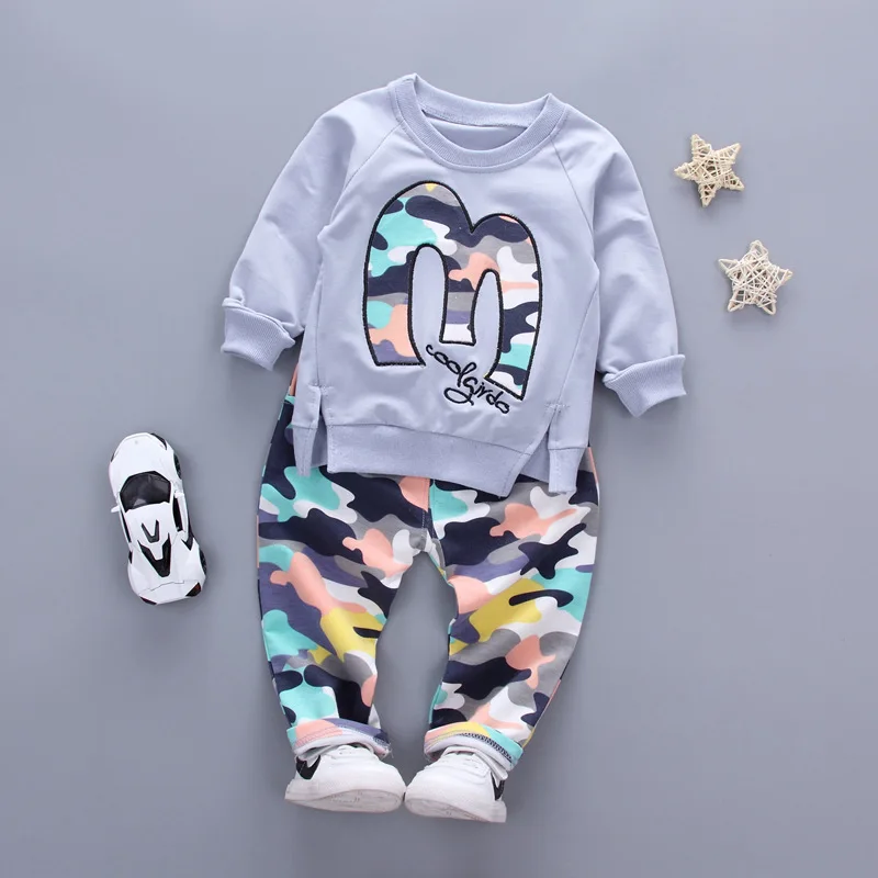 Baby Boy Summer Clothes Girl Letter M Warm Cotton Clothing Set For Kid Camouflage Jackets Pant 2pcs Fashion Children Sports Suit