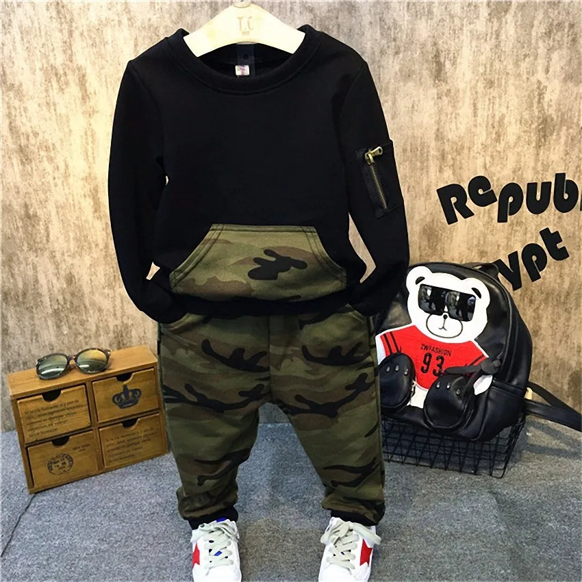 Belababy Boys Clothing Sets Baby Spring Sports Casual Long Sleeve Shirt+Pants Kids 2PCS Camouflage Kids Tracksuit For Boys