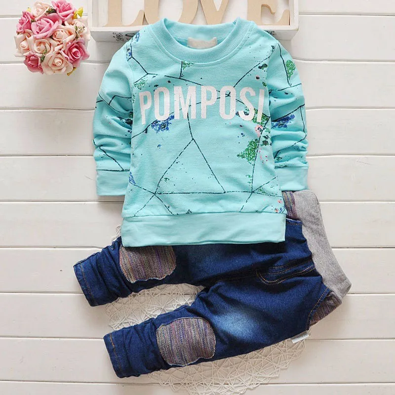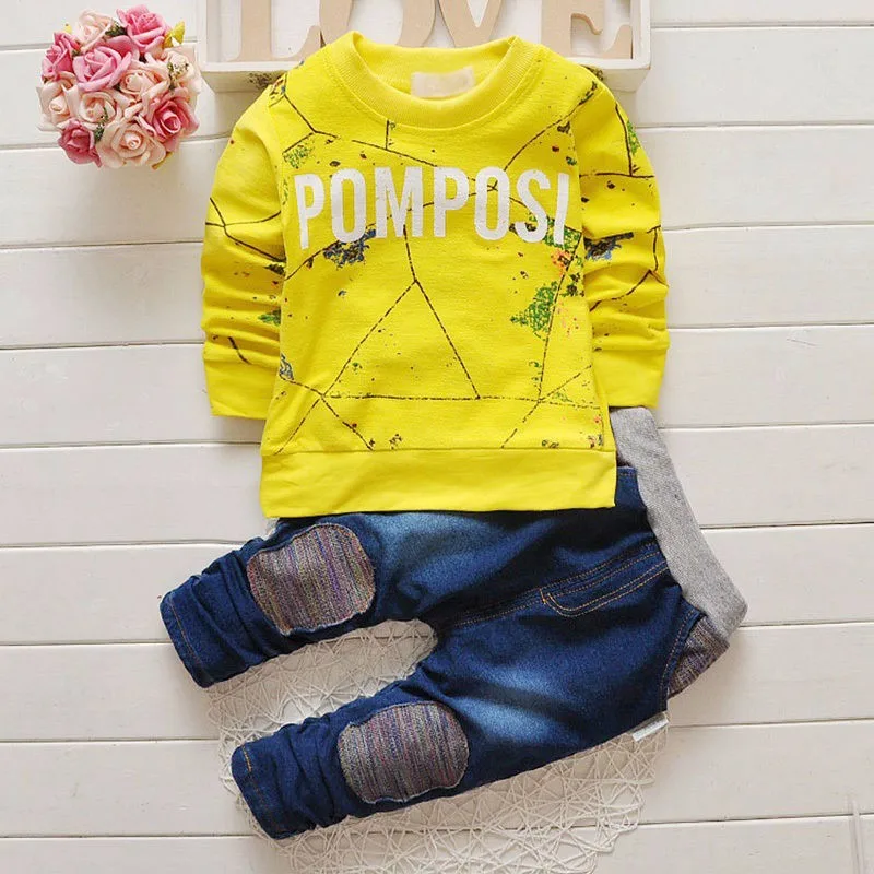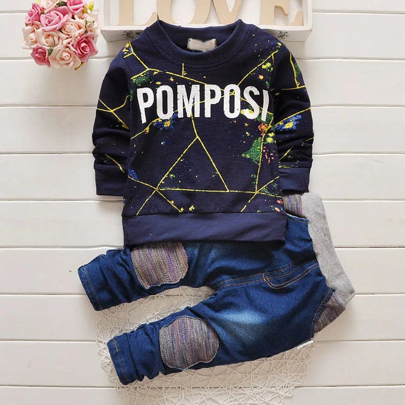 High quality brand hot sale 2016 New Chidren Kids baby Boys Clothing Set spring Autumn Winter 2 Piece Set full sleeve Hooded Coat t shirt +pants 2pcs/set Fall Cotton Baby Boys letter tracksuits sports wear outfits clothes fashion leisure casual sets 18M -4T outdoor letter pattern free shipping baby infants