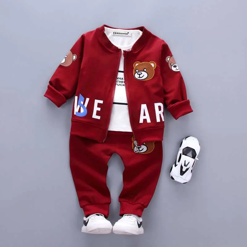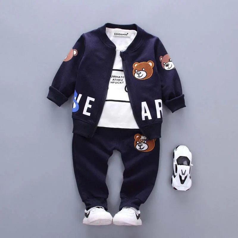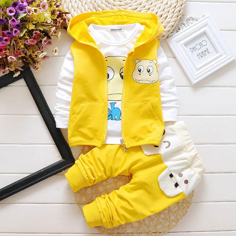 Children Clothing Sets Boy Winter 3 Piece Girls Clothes Sets Hooded Coat Sport Suit Baby Boys Clothes Cartoon Cotton Oufits Suit