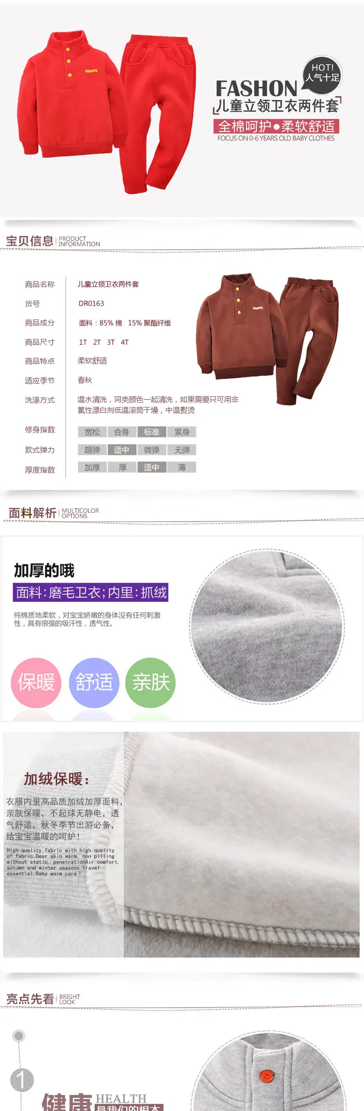 DANROL 2Pcs Baby Boy Clothes Keep Warm Long Sleeve Hoodies+Pants Red Yellow Grey Kids Clothes Solid Fleece Baby Girl Clothes V20
