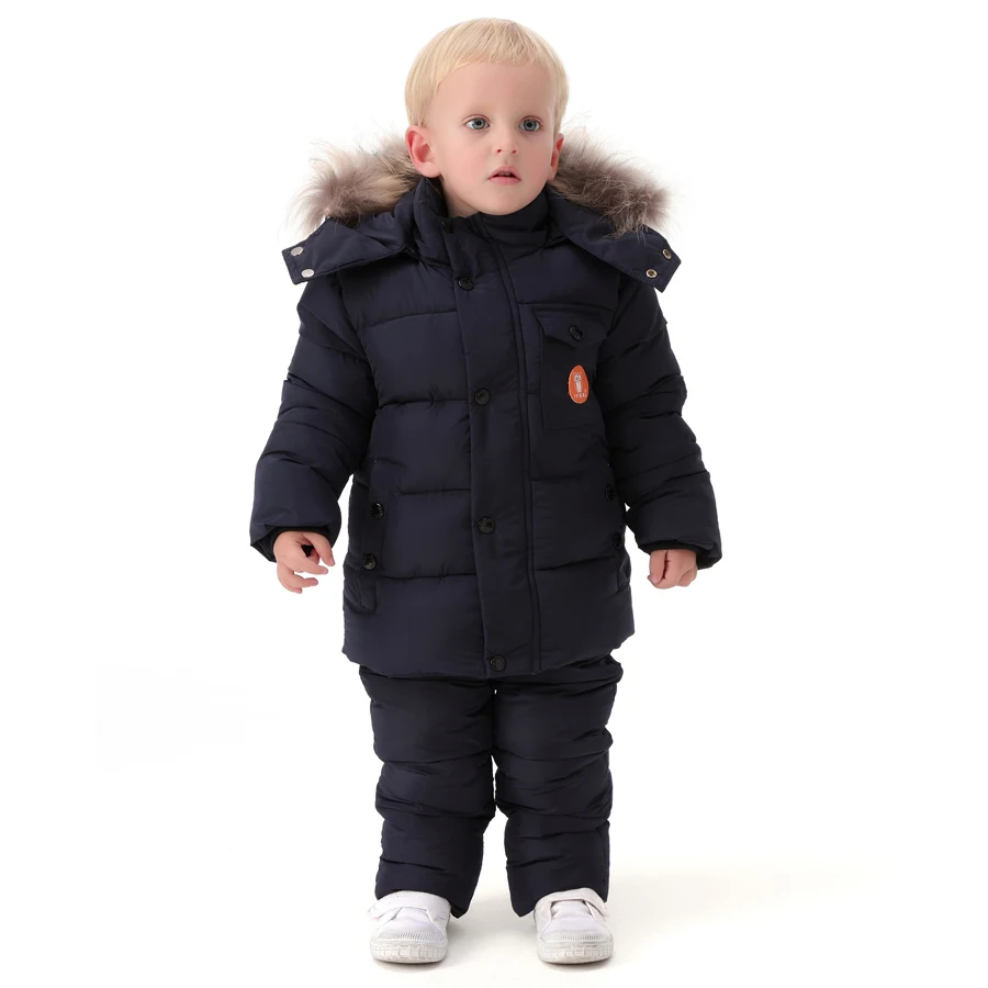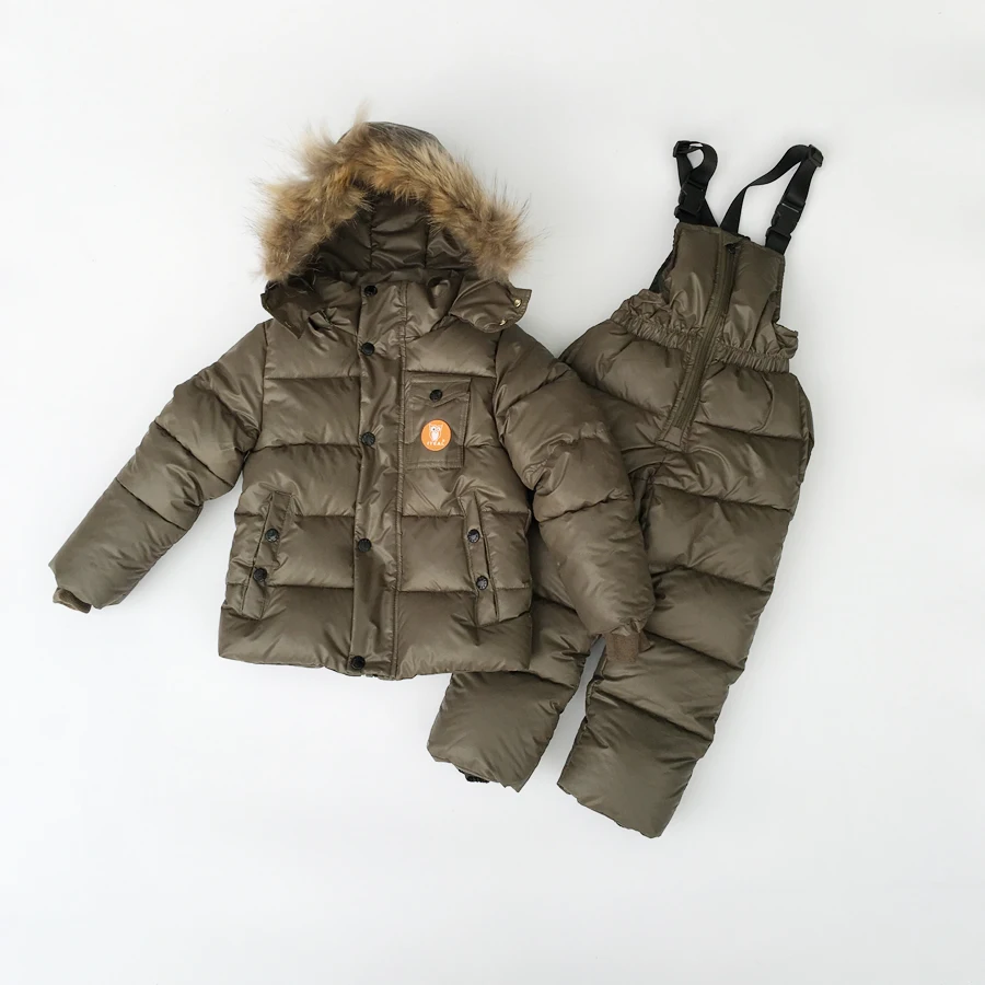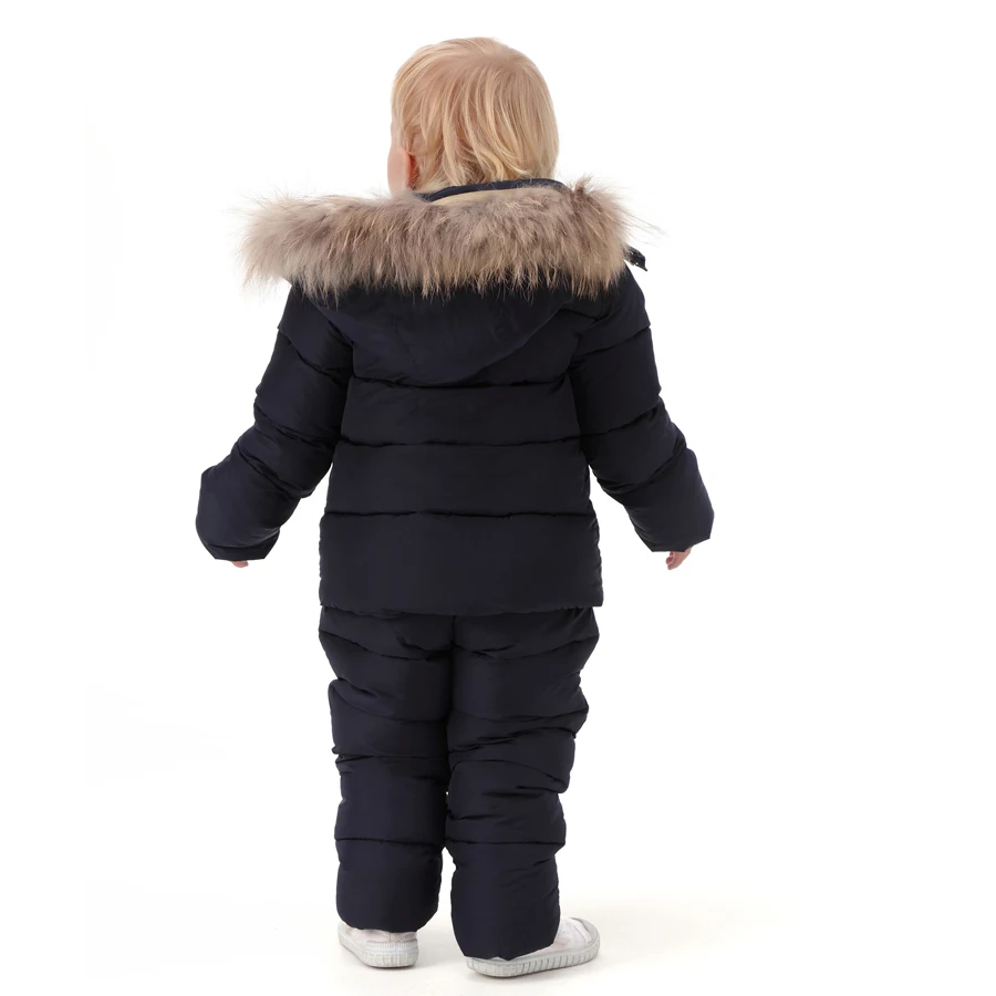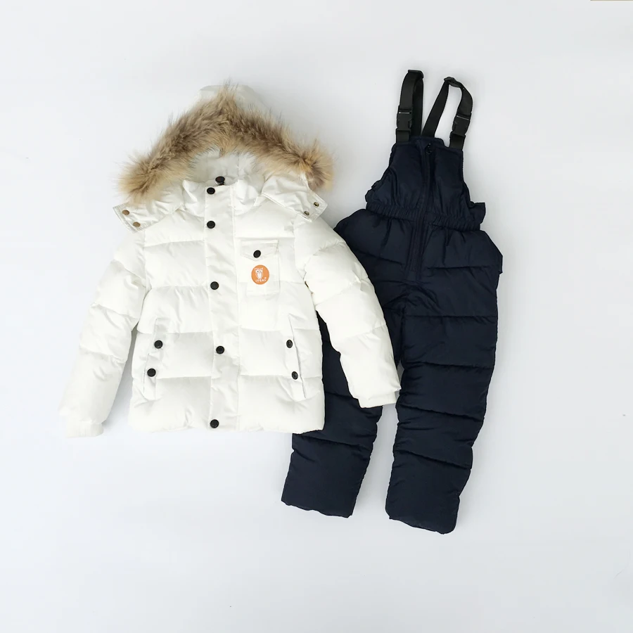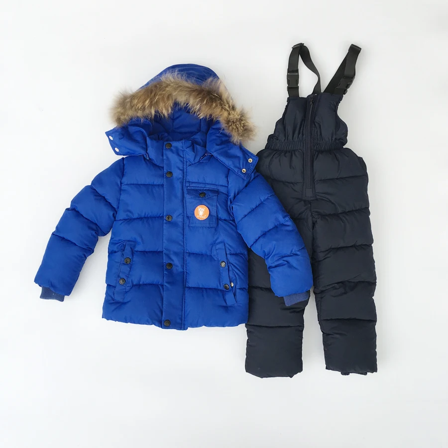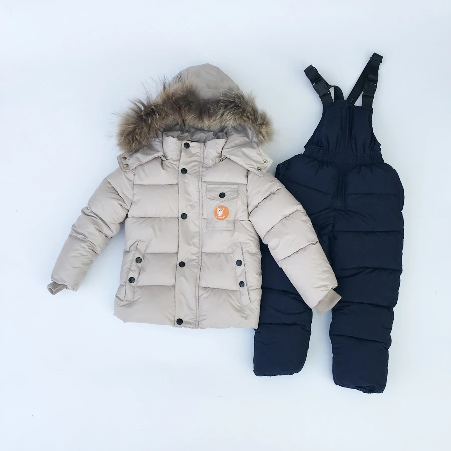 Brand Winter Children Clothing Set for Infant Boys Natural Fur Down Cotton Coat +Overalls Windproof Ski Suit Kids Baby Clothes