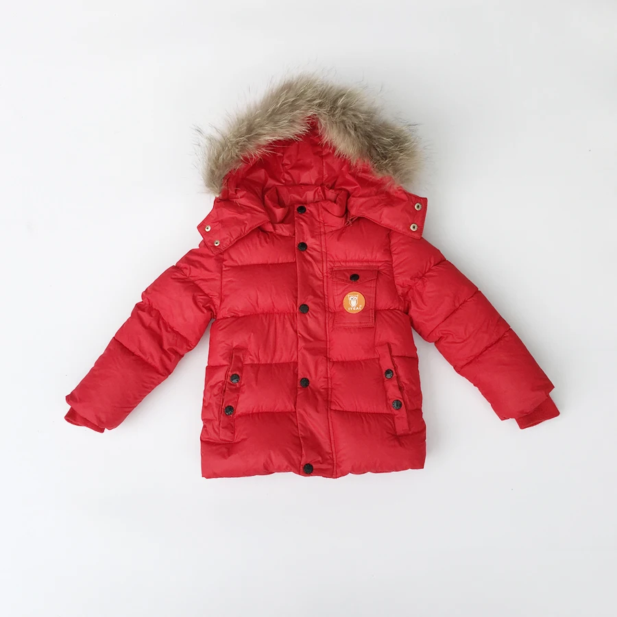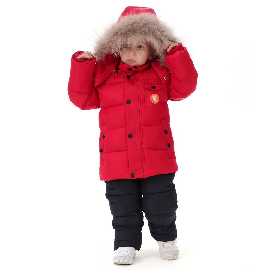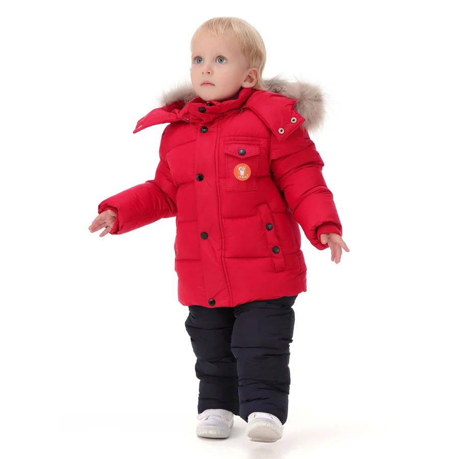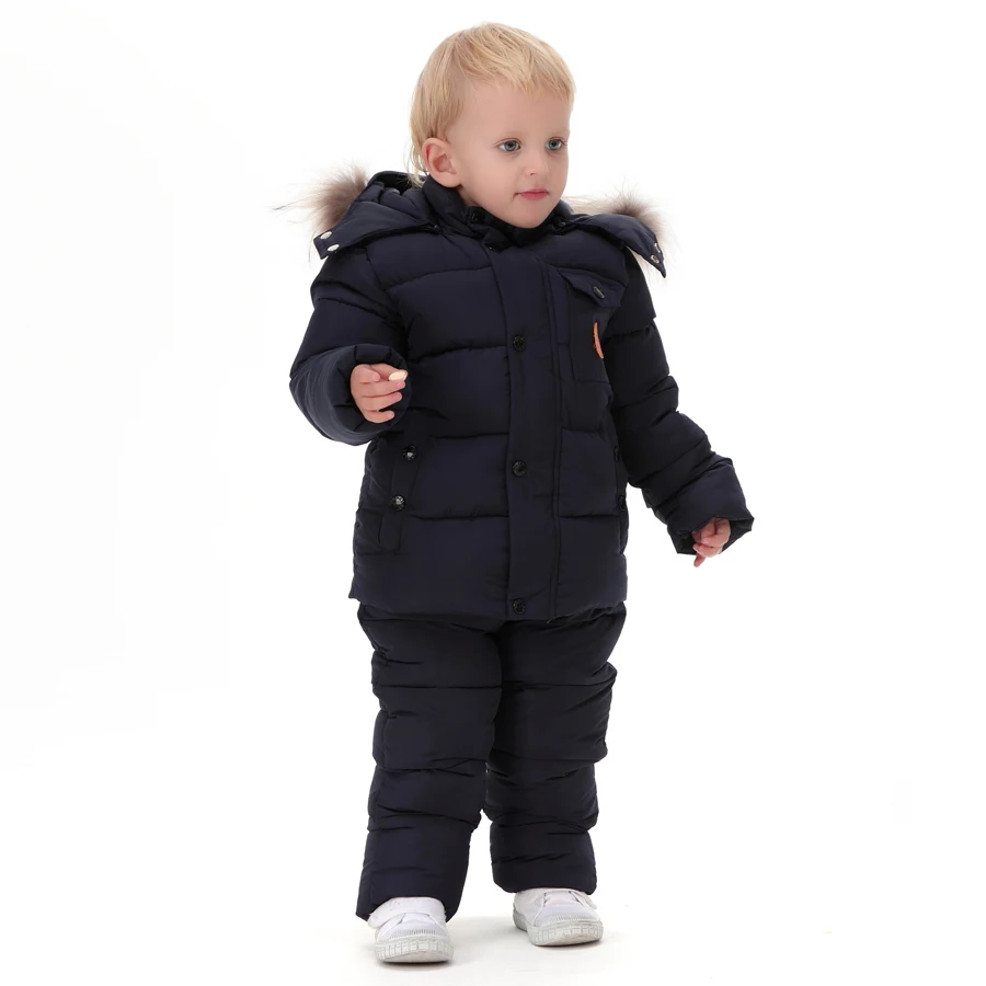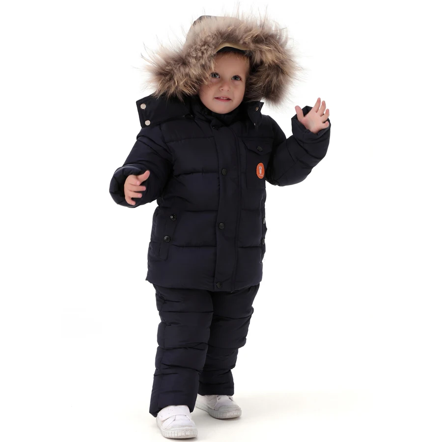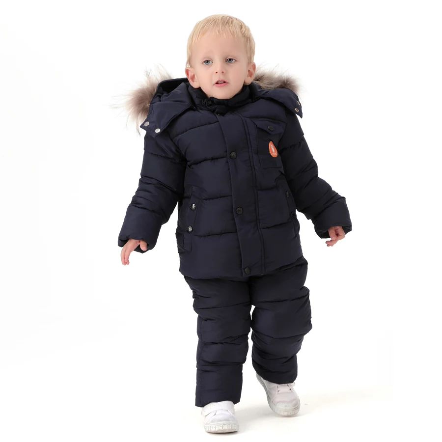 Brand Winter Children Clothing Set for Infant Boys Natural Fur Down Cotton Coat +Overalls Windproof Ski Suit Kids Baby Clothes