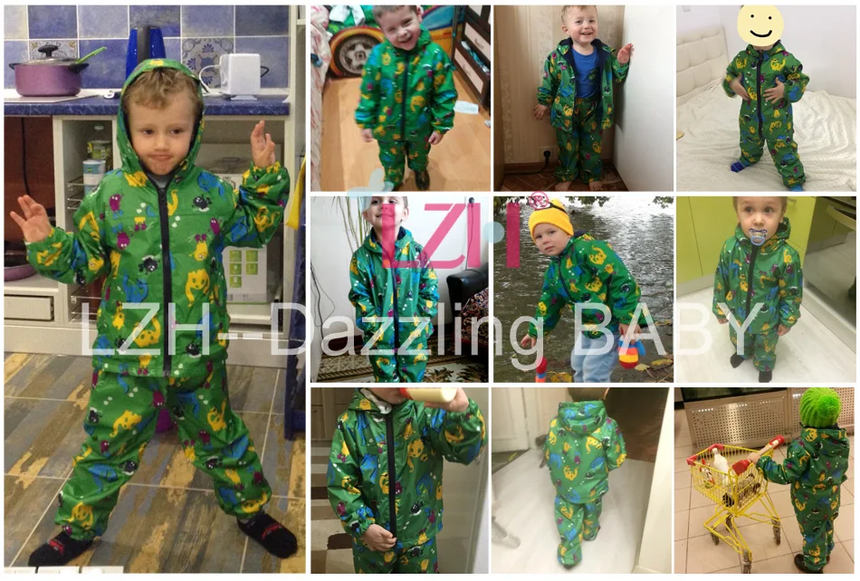 Children Raincoat Suit Boys Clothes Set Cartoon Dinosaur Printing Hooded Kids Raincoat Jacket + Pants Outfit Suit Children Clothe
