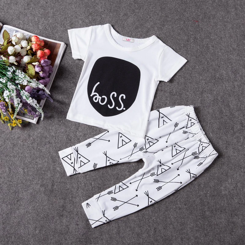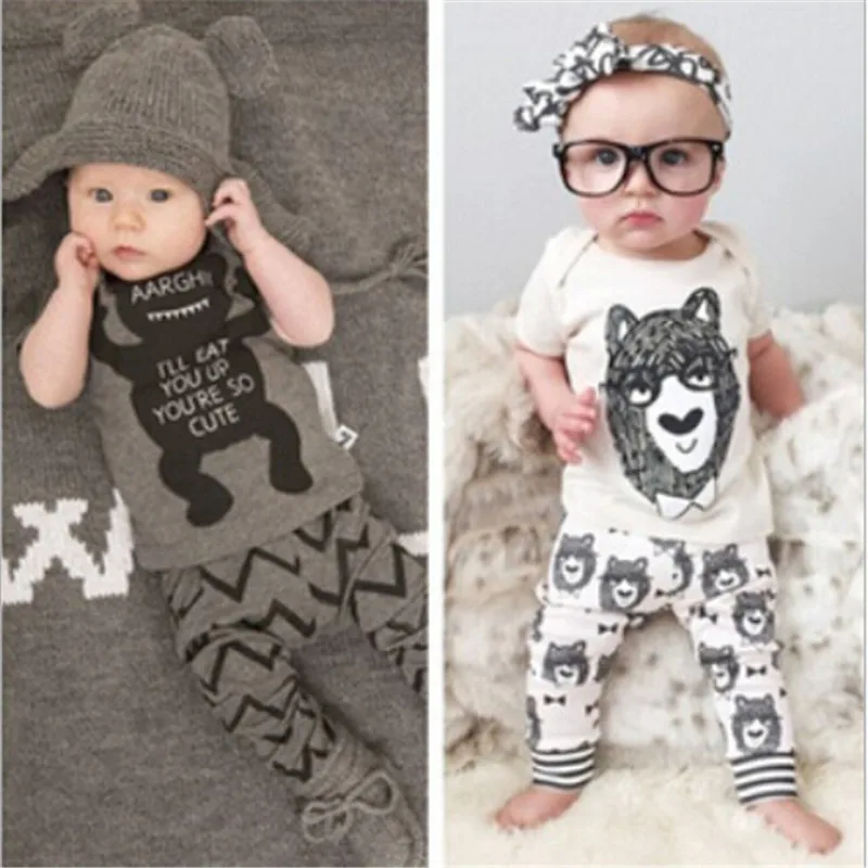 2017 Summer Baby Girl Boy Clothes Letter Pattern Infant Girl Clothing Set Short Sleeves T Shirt+Pant Outfit Suit Newborn Clothes