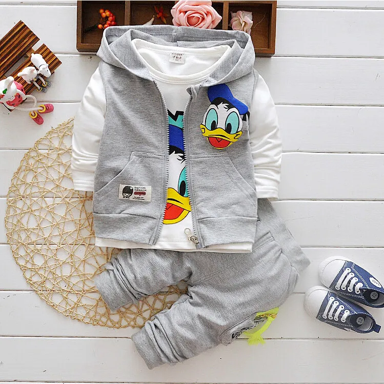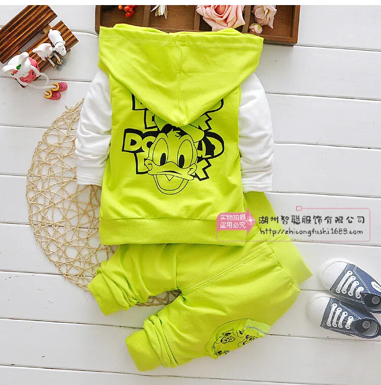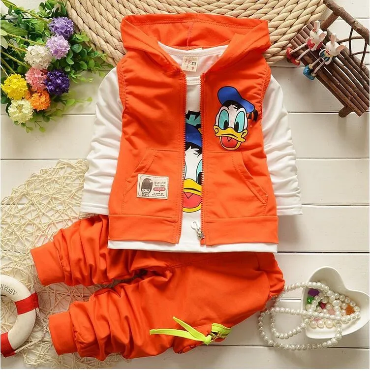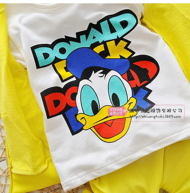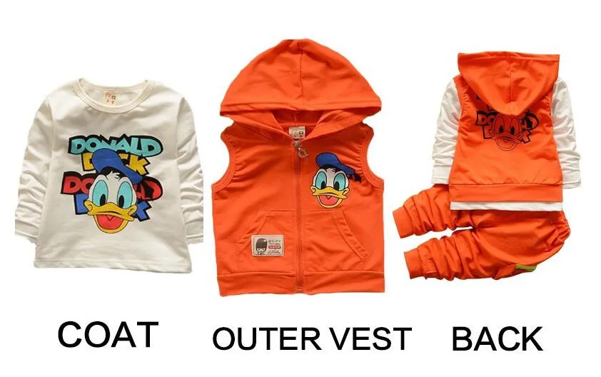 | Name:New Donald Duck Boys Clothing Sets Kids Autumn Character Cotton Long Sleeve Shirt +Pants+ Vest 3 Pcs Suit Children Clothes Set | |