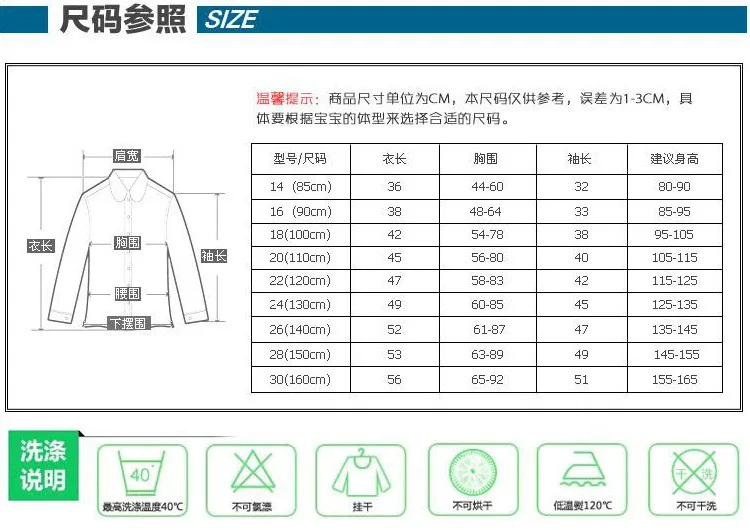 | Size | Length | Bust | Sleeve | Suggest Heigth | Tag |