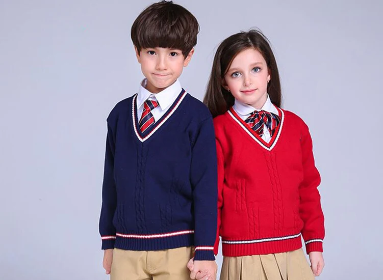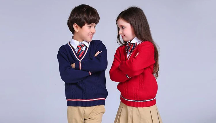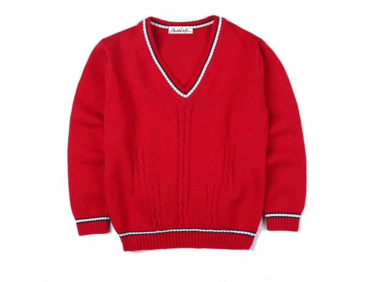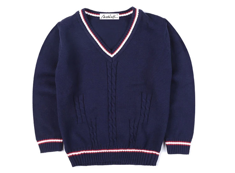 ActhInK New Children Pullover Sweater for Girls Brand Top Quality Boys Winter V-Neck Woolen Coat School Kids Cotton Sweater