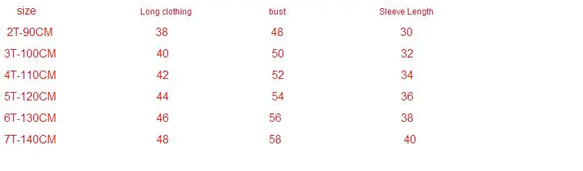 SIZE NO Suggest High Length(cm) Bust x 2(cm) 100(2-3T) 90-95cm 48 26×2 110(4T) 95-105cm 50 27×2 120(5T) 105-115cm 53 28×2 130(6) 115-120cm 54 28×2 140(7) 120-130cm 55 29×2