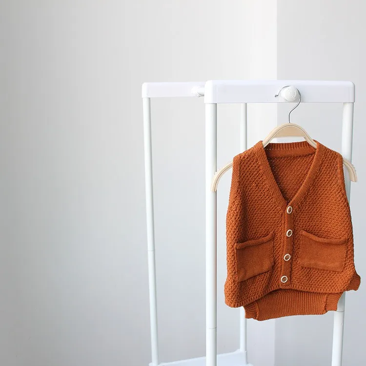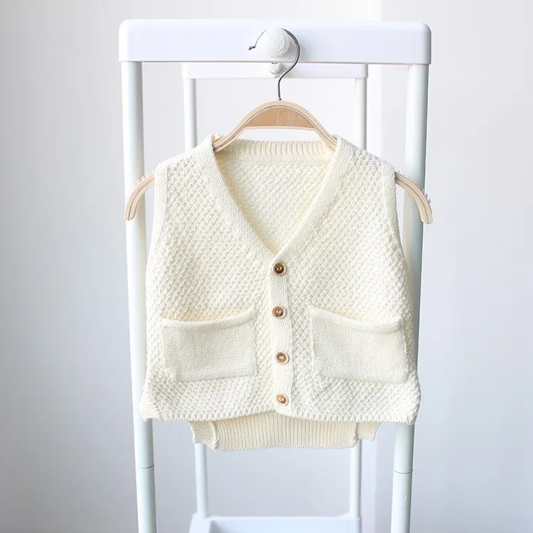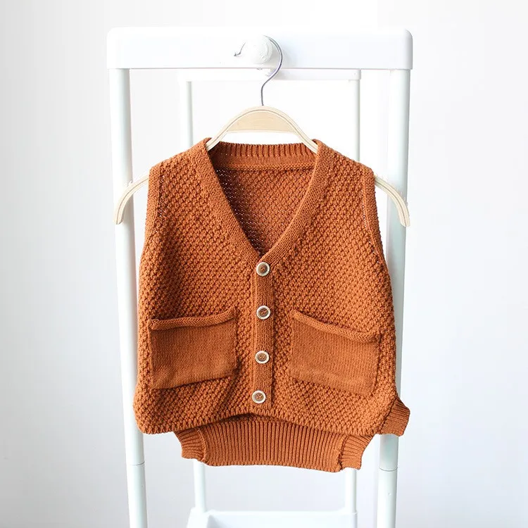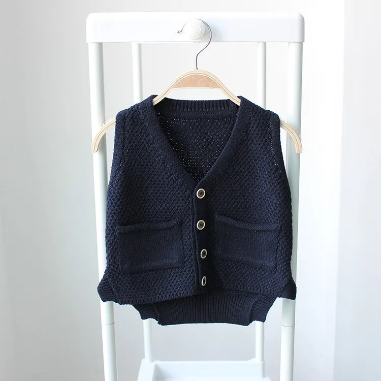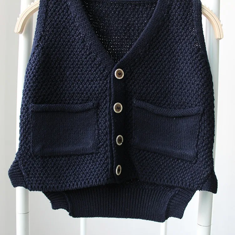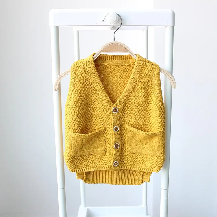 High Quality Baby Infant Kids Cute Fashion pocket Vest Sweater 2016 Spring Fall Little Girls Knitwear Children V neck waistcoat