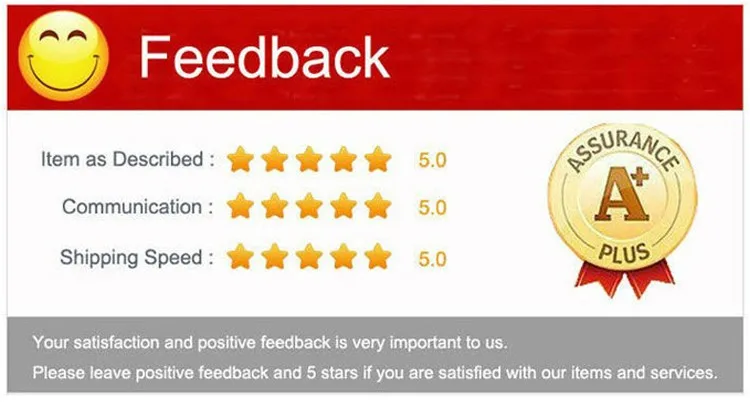A. Your satisfaction is our target! Giving negative or neutral feedback is very serious attitude and we make sure that we CAN solve your problem before leaving negative feedback. We sincerely hope you like our items and enjoy our service. We are looking forward your POSITIVE FEEDBACK.
