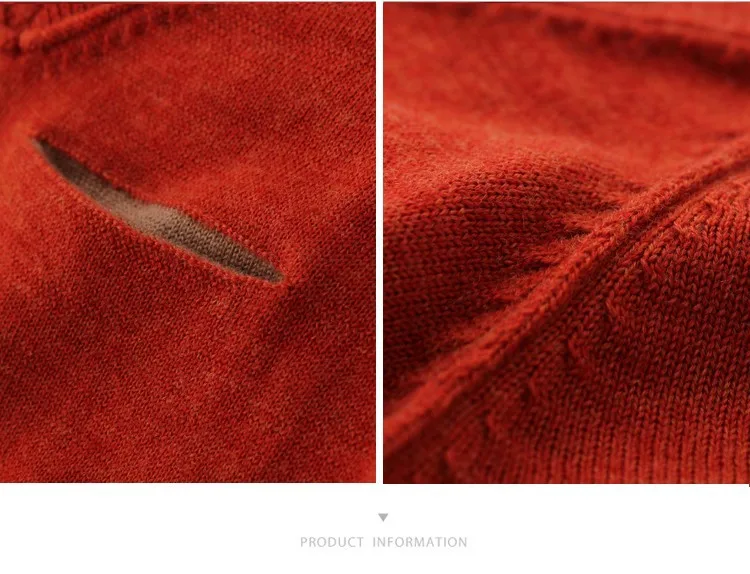 Made of 100% wool, this knitwear is a perfect choice for spring/autumn. Italy Merino wool, smooth, soft and warm, it guarantees its good ability to keep warm. V neck, set-in pocket, contrast color design on the chest, all these futures add to its uniqueness. Flat stitching, 12gg knitting, it is neither too thin nor too thick. Dark gray, orange, two colors available for this design.