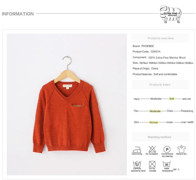 brand phoebee 2-8years sweater for boys woolly clothes for boys little sweaters toddler kinder pullover cardigans V-Neck cdk014