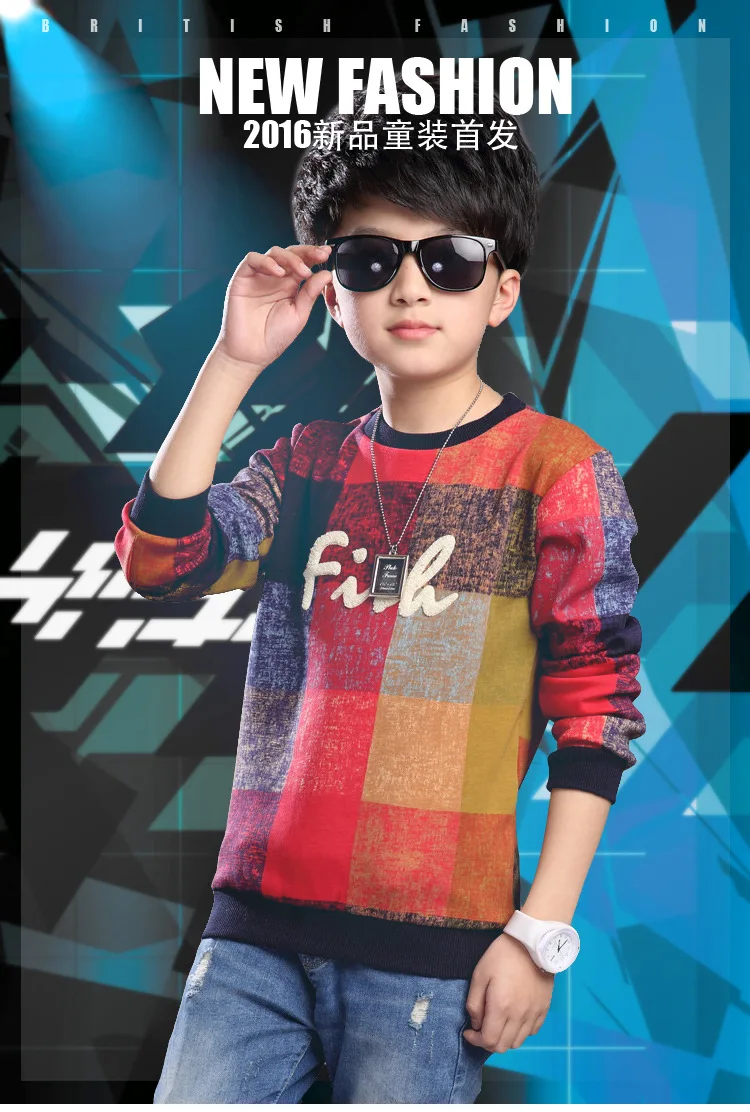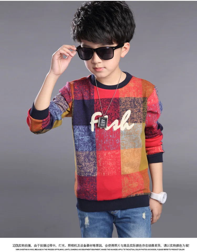 New Design Boy Casual Style Sweater Square Pattern Kid Pullover Knitted Clothes High Quality Children Warm Sweater Top 5-15 Age