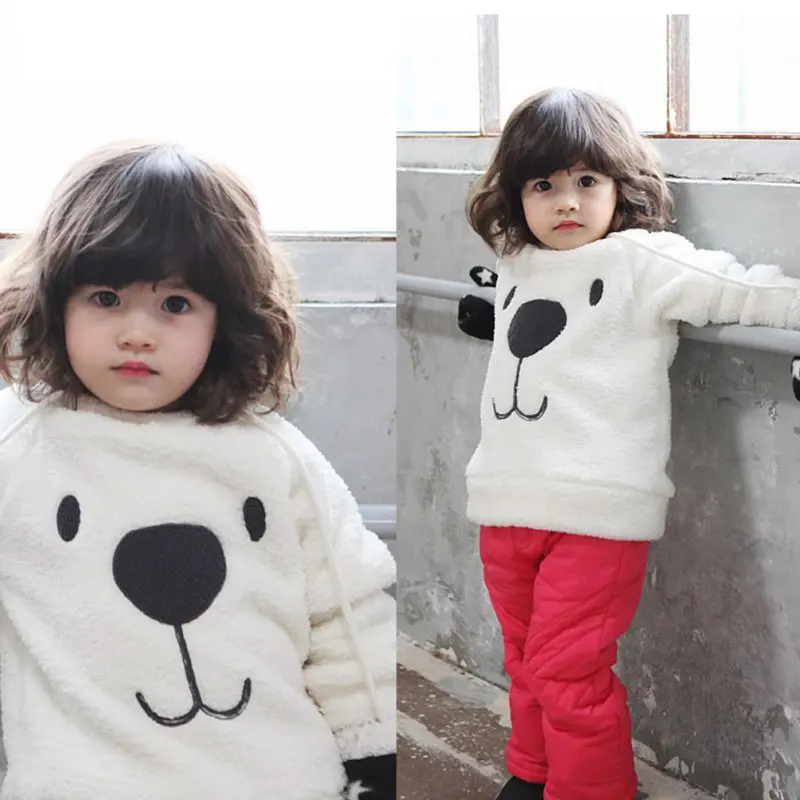 New Winter Children’s Baby Clothing Boys Girls Lovely Bear Furry White Coat Thick Wool Sweater Jacket Comfortable.