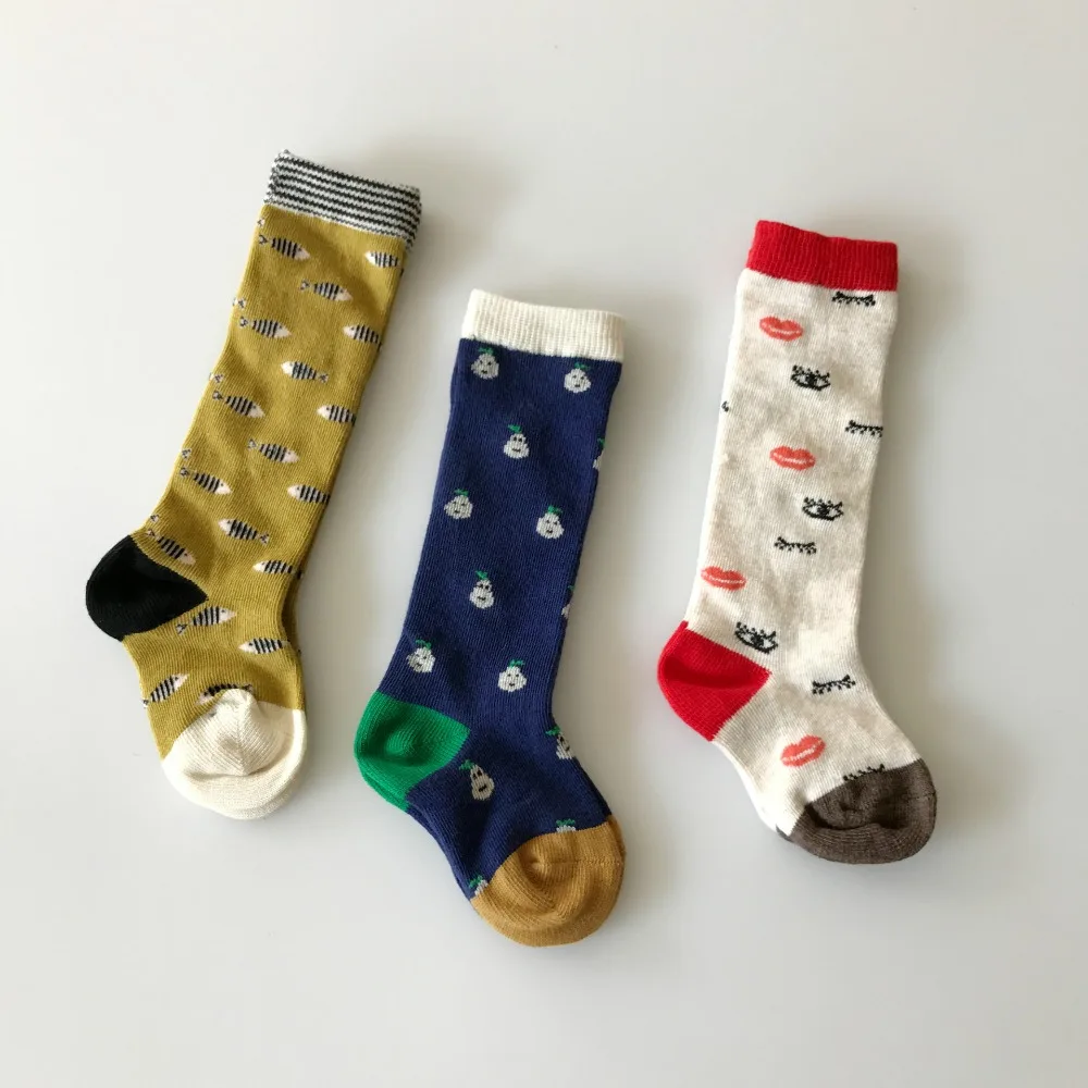 Item name : New born Children Knee long Socks Material : Cotton & Spandex Size : 0-2T(Tiles28CM),3T-5T(Tiles35cm) Color : can choice the pattern your kids like Thickness : Medium Package :1 Pairs / bag