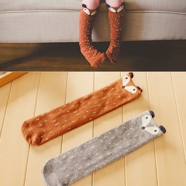 2016 two colors fox socks knee high socks for kids size:XL XXL XL length 30cm fit 0-2Y XXL length 40cm fit 2-5Y