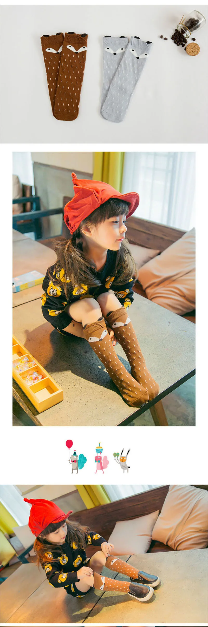 2016 New Baby Girls Knee Socks Fox Cotton Baby Sockings Cartoon Cute Kid Socks Toddler Boot Hight Knee Socks cool kids sockings