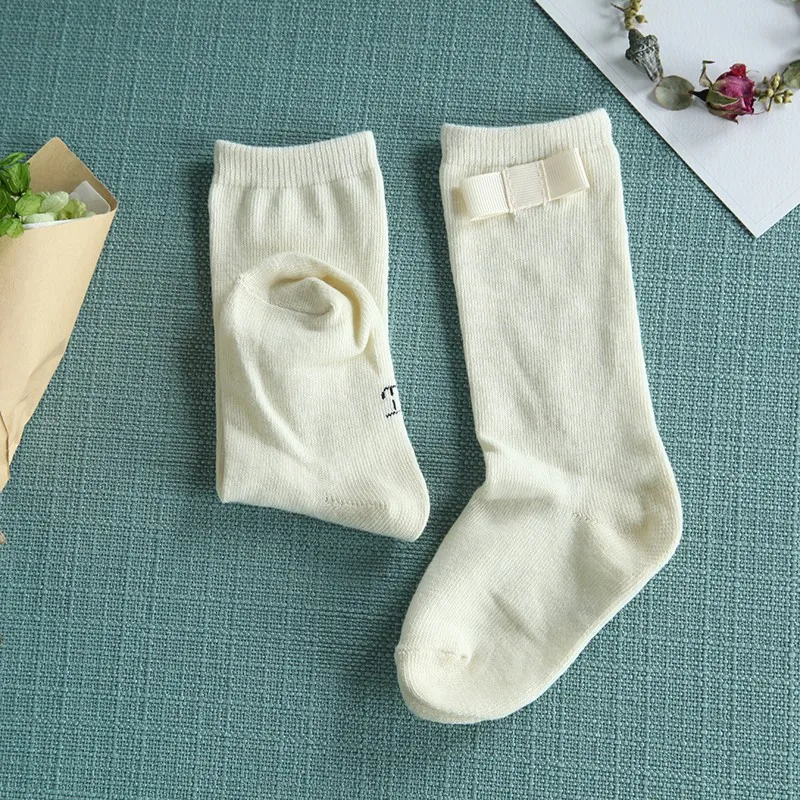 Baby Girls Knee Socks with Bows Girls Princess Bowknot Socks Kids School Socks Long Tube Children’s Leg Warmer Creamy-White Blue