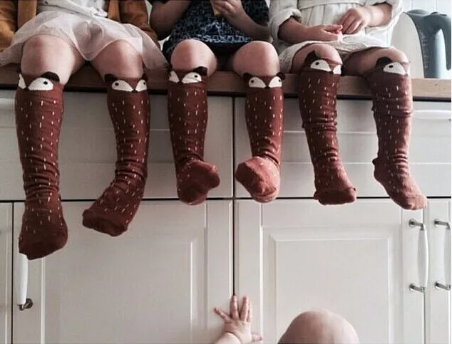 New Fashion Unisex Baby Girl Boy Knee High Fox bear Socks Cloud Rain Non Slip Socks Fabric: Cotton Size S for 0-2 years old M for 3-4 years old