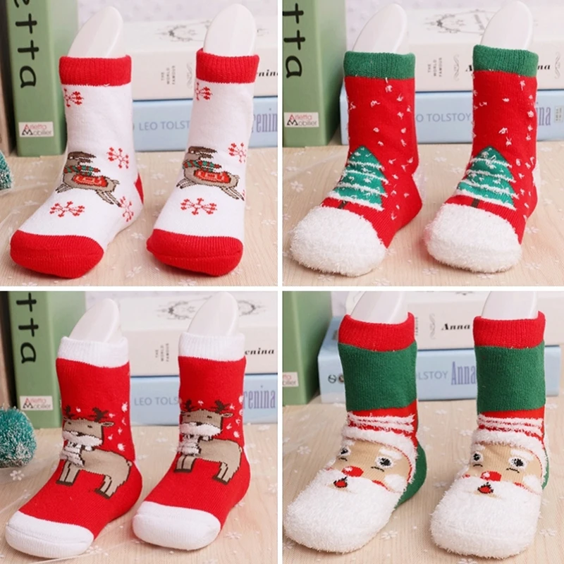 Cute Deer Christmas Santa Claus Warm Cotton Socks Baby Kids Gift