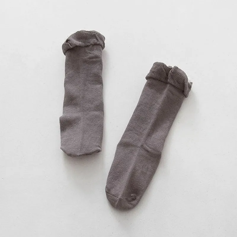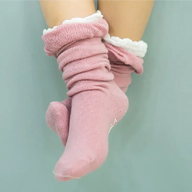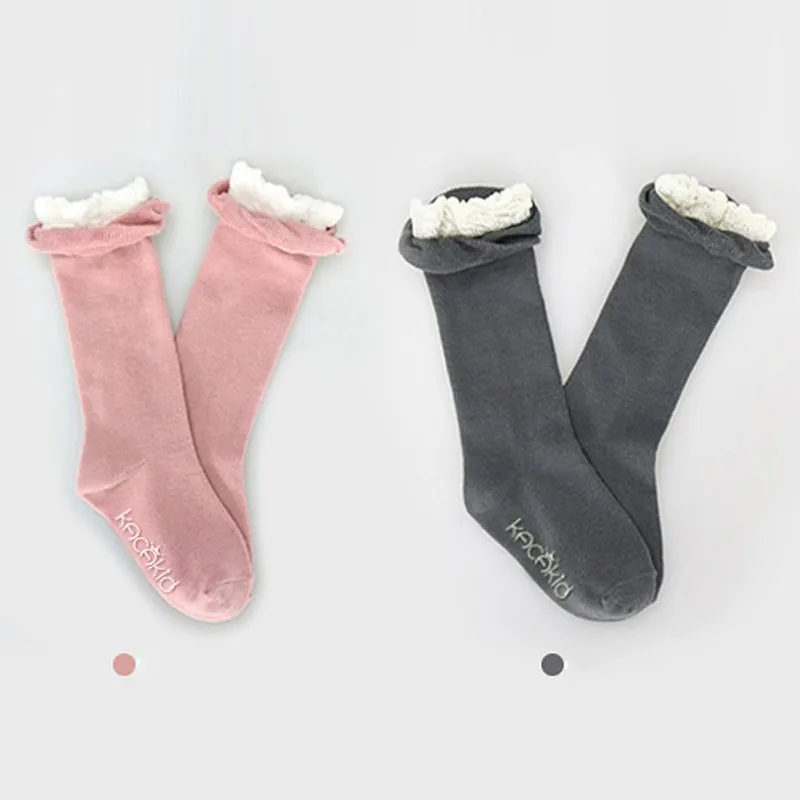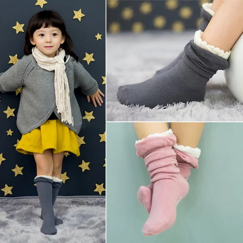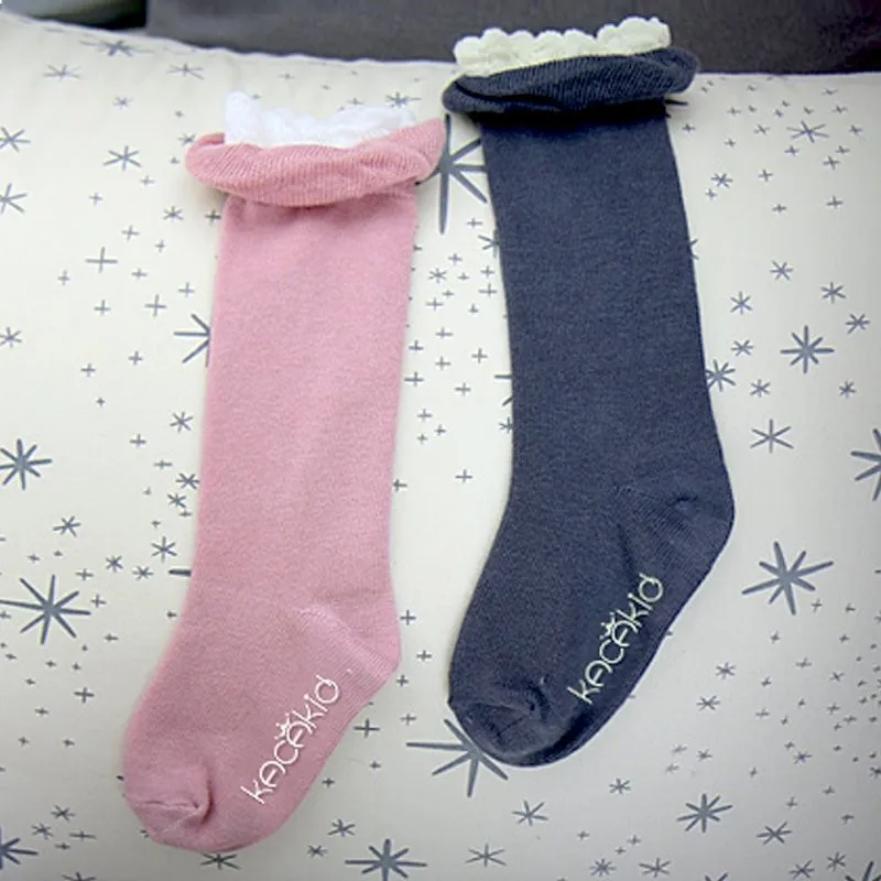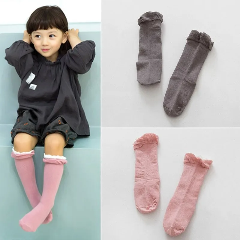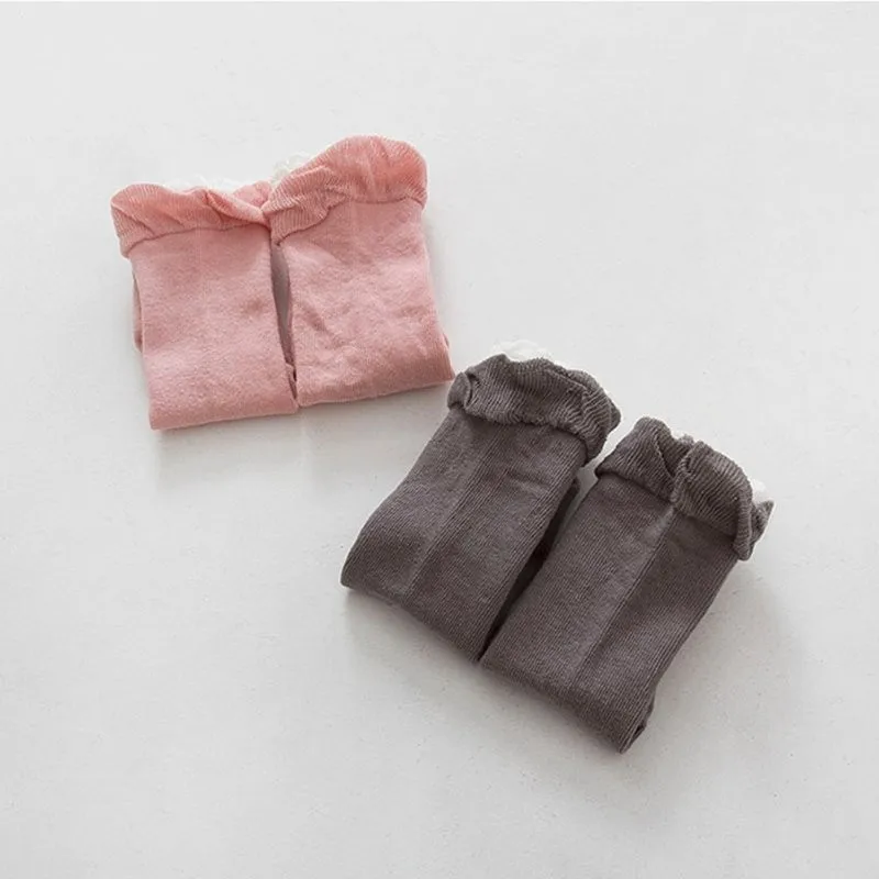 Newborn Cotton Lace Anti-slip Warmer Legs Knee Socks Kids Baby Solid Stockings 0-4Y Pink.Gray