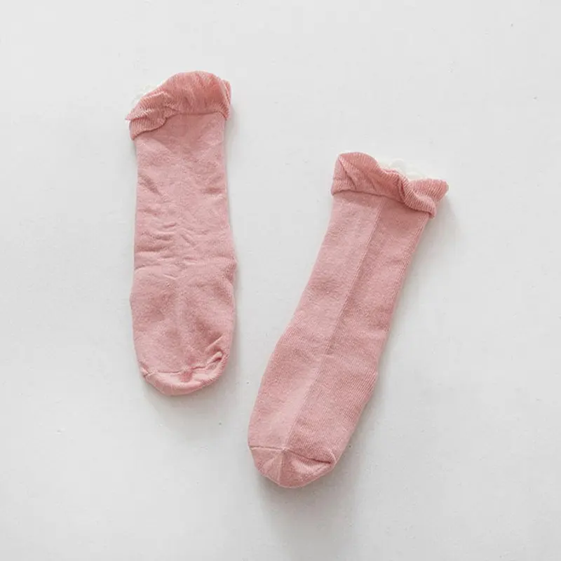 Newborn Cotton Lace Anti-slip Warmer Legs Knee Socks Kids Baby Solid Stockings 0-4Y Pink.Gray