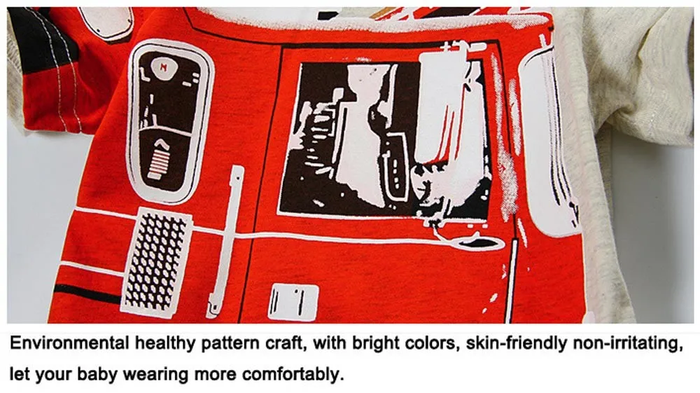 Baby Boy T-shirt Children Short Sleeve Top Shirt Fire Truck Brand New Summer T-shirt Kid Boy Solid Cotton T-shirt Clothes