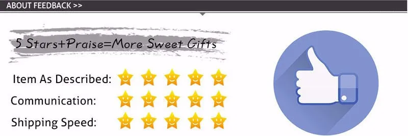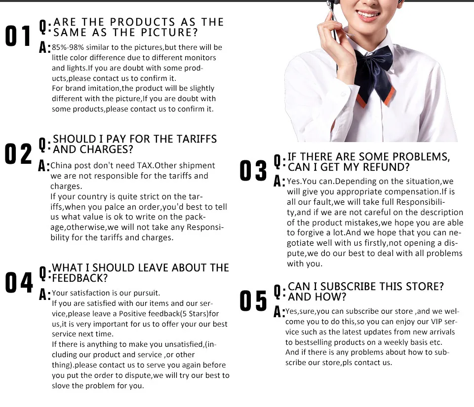 Dear Customer: 1)Please be sure that we’ll ship the goods out within 1-3 days,although we can’t be on line all the time due to the time zone. 2)Try to avoid probable taxes,packages mark with ‘gift’ and set the value as … Read More