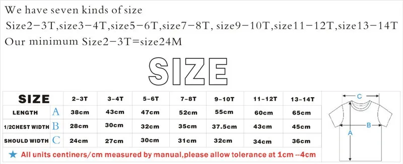 Size Chart,it has 1-2 cm error Product Size Height Length Bust Age 3T 90cm 39cm 56cm 2 years 4T 100cm 42cm 60cm 2-3 years 5T 110cm 45cm 64cm 3-4 years 6T 120cm 48cm 68cm 5-6 years 7T 130cm 50cm 72cm … Read More