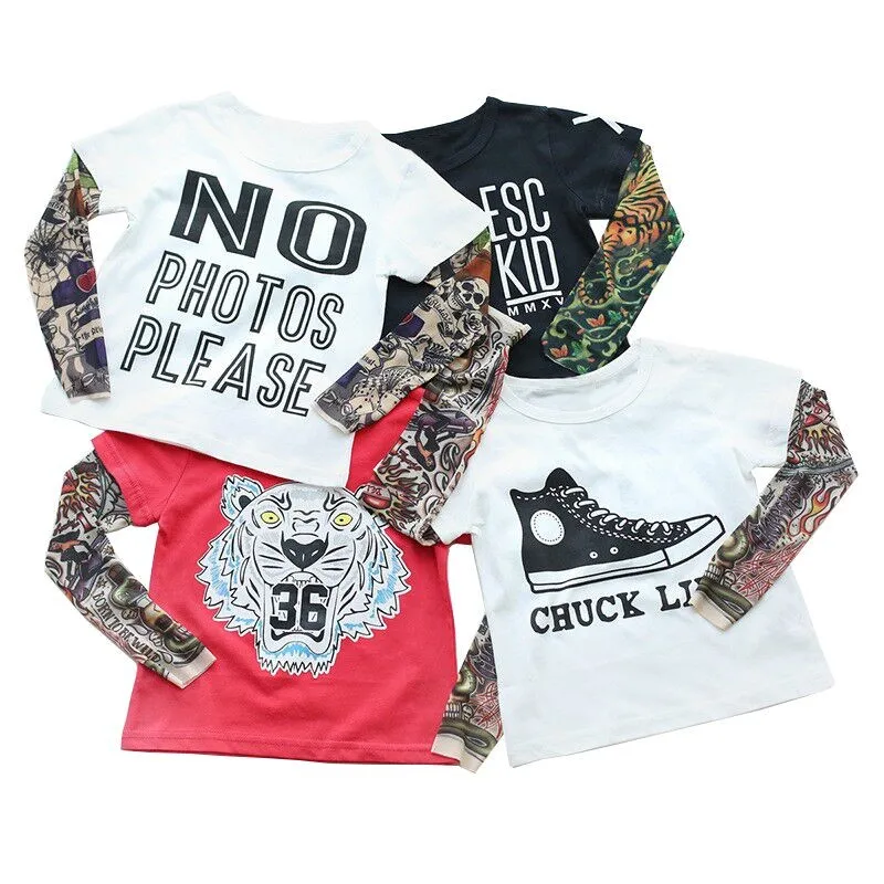 Cool Baby Boys Girls T shirts Tattoo Sleeve Children Mesh Long Sleeve Cotton Tops Tees 2016 Kids&Toddlers Shirts Clothes