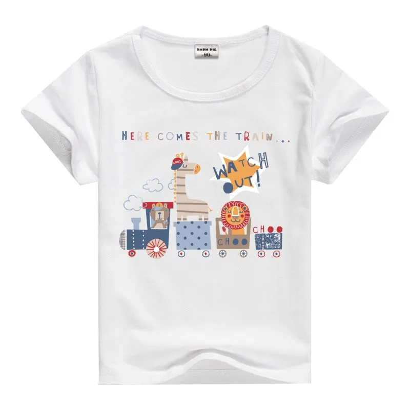 Material:100% Cotton Color:White Collar:O-Neck Brand:DMDM PIG Size in age:3T-4T-5T-6T-7T Size in height: 90cm-100cm-110cm-120cm-130cm Package:1 pcs t shirt