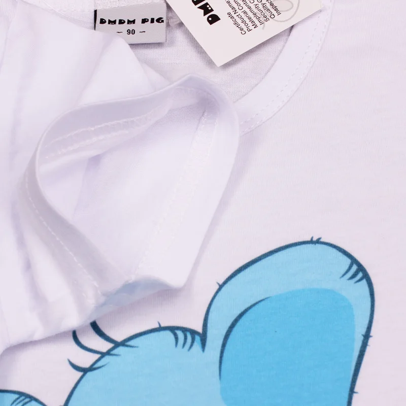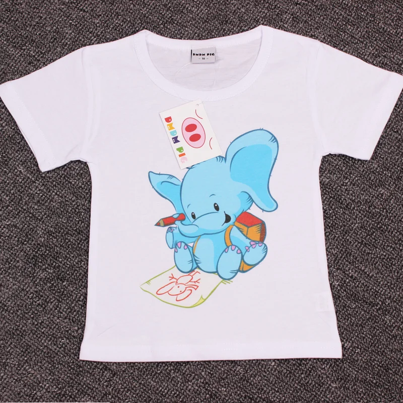 Material:100% Cotton Color:White Collar:O-Neck Brand:DMDM PIG Size in age:3T-4T-5T-6T-7T-9-10-11-12-13-14 Size in height: 90cm-100cm-110cm-120cm-130cm-140cm-150cm-160cm Package:1 pcs t shirt