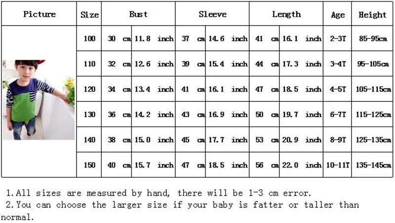 Size Chart,it has 1-2 cm error Product Size Height Length Bust Age 3T 90cm 39cm 56cm 2 years 4T 100cm 42cm 60cm 2-3 years 5T 110cm 45cm 64cm 3-4 years 6T 120cm 48cm 68cm 5-6 years 7T 130cm 50cm 72cm … Read More
